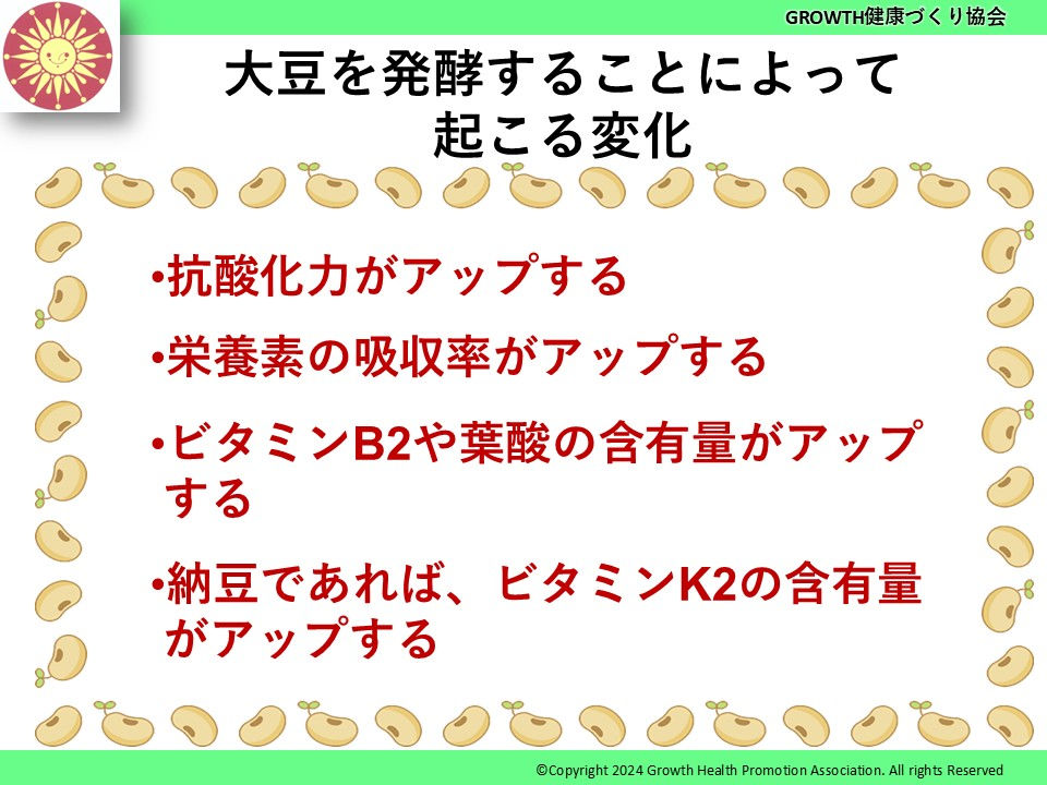 ビタミンB2や葉酸は、微生物が大豆を分解する過程でビタミンの前駆体から作り出され、含有量がしっかり増えていくという。